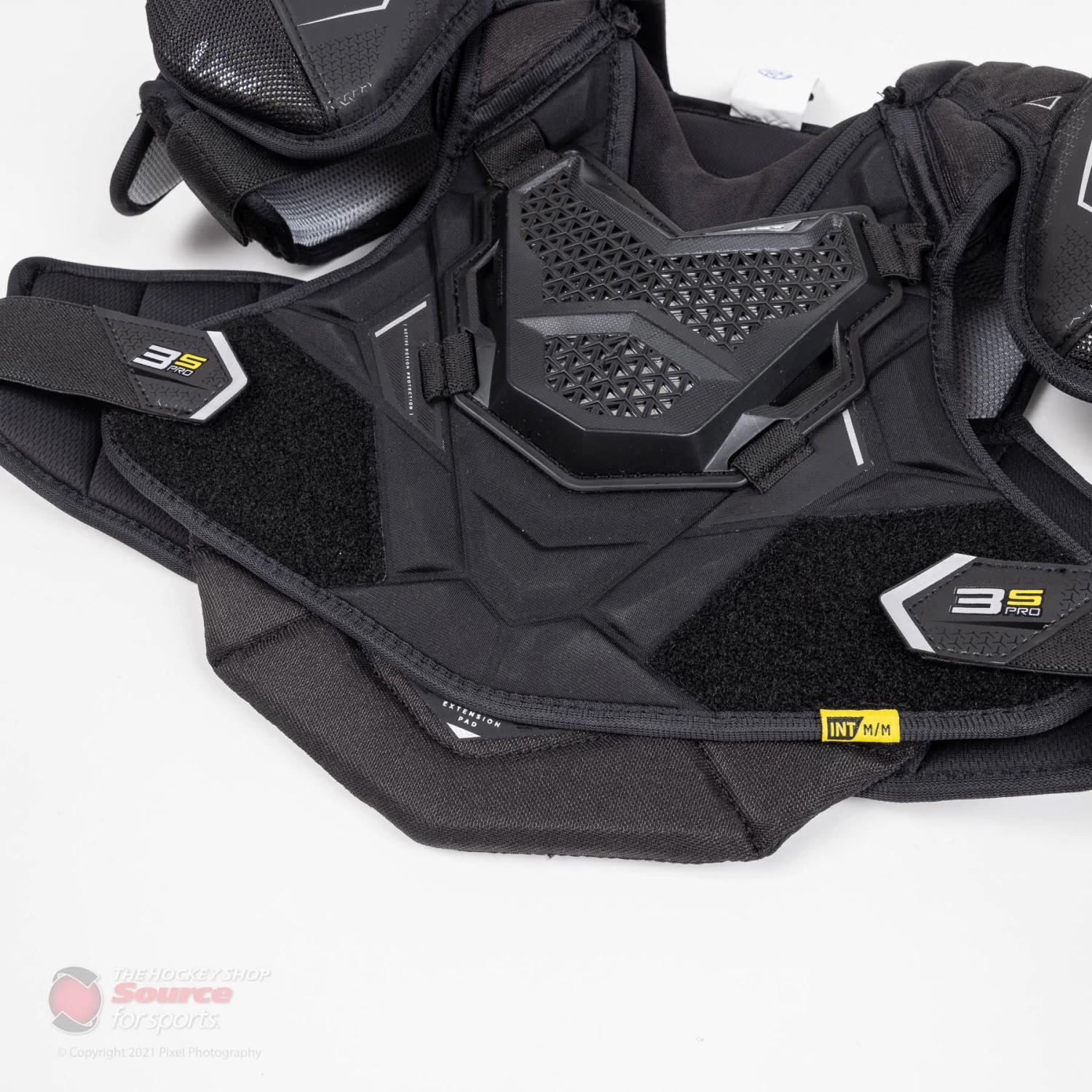 The Bauer Supreme 3S Pro INT Hockey Shoulder Pads target the performance players. These shoulder pads are designed for the player on the ice roughly 3-4 times a week looking for features that will help their performance, but at a margin of the price of the UltraSonic. Bauer has designed the 3S pro to maximize the player’s protection without hindering any mobility or comfort in the shoulder pad. To pull everything together, Bauer decided to black out the entire shoulder pad. Perfect for hiding sweat!