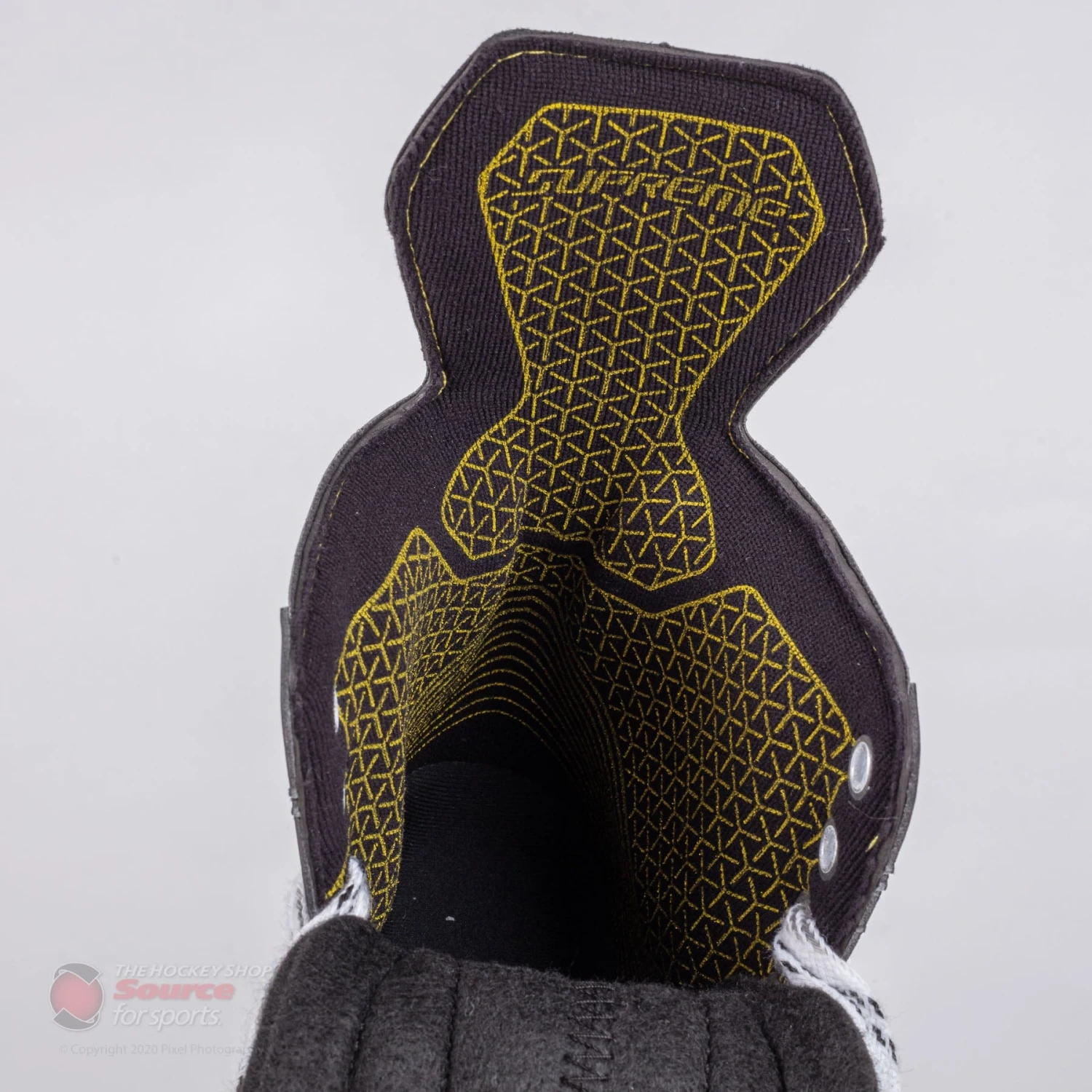 The Supreme Elite skate uses Bauer’s Die Cut Eva footbed that provides cushion and comfort all ice time long.