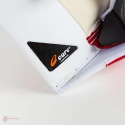 The hand protection is great on this blocker, with finger protection and large thumb protection, ensuring nothing gets to your palm or fingers. The side board also has a tapered area that will hug the stick, preventing puck from riding up your stick and hitting your fingers.