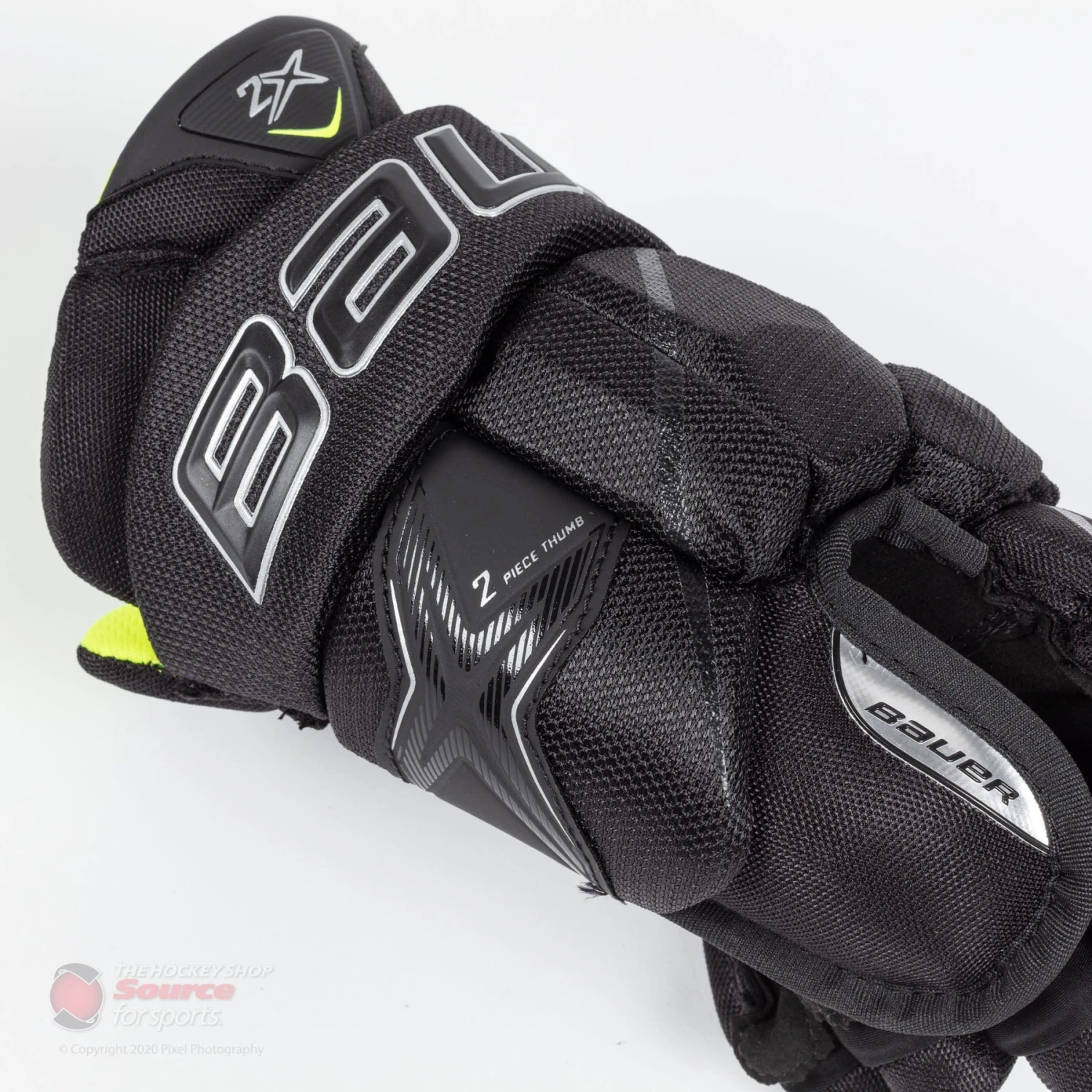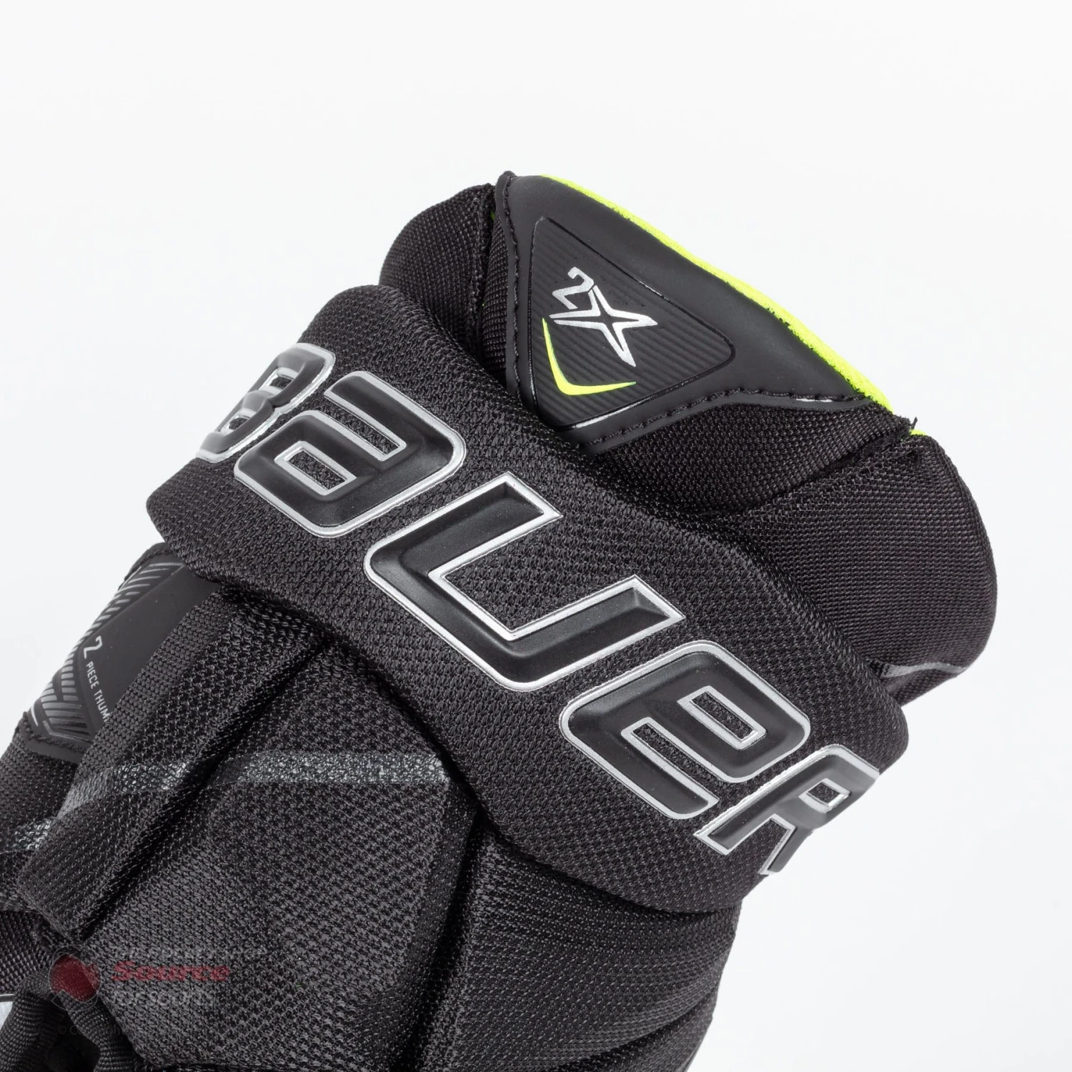 The Bauer Vapor 2X glove fits snug through the hand and opens up at the cuff creating a very comfortable stick feel. You will feel confident your hands are fully protected while snapping the puck around in these lightweight gloves.