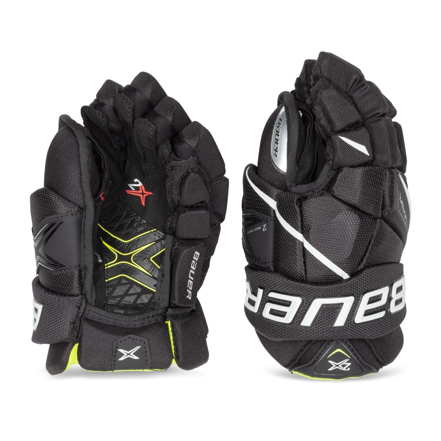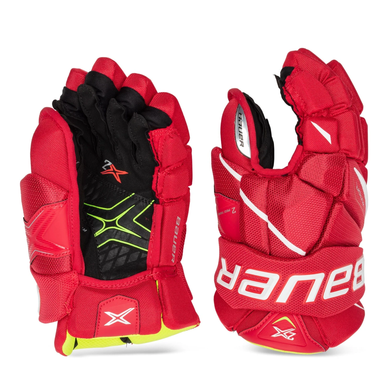 The Bauer Vapor 2X Junior Hockey Gloves come in sizes 10”, 11” and 12” and are available in black/white, black/black, navy/white, navy/red/white, and red/white.