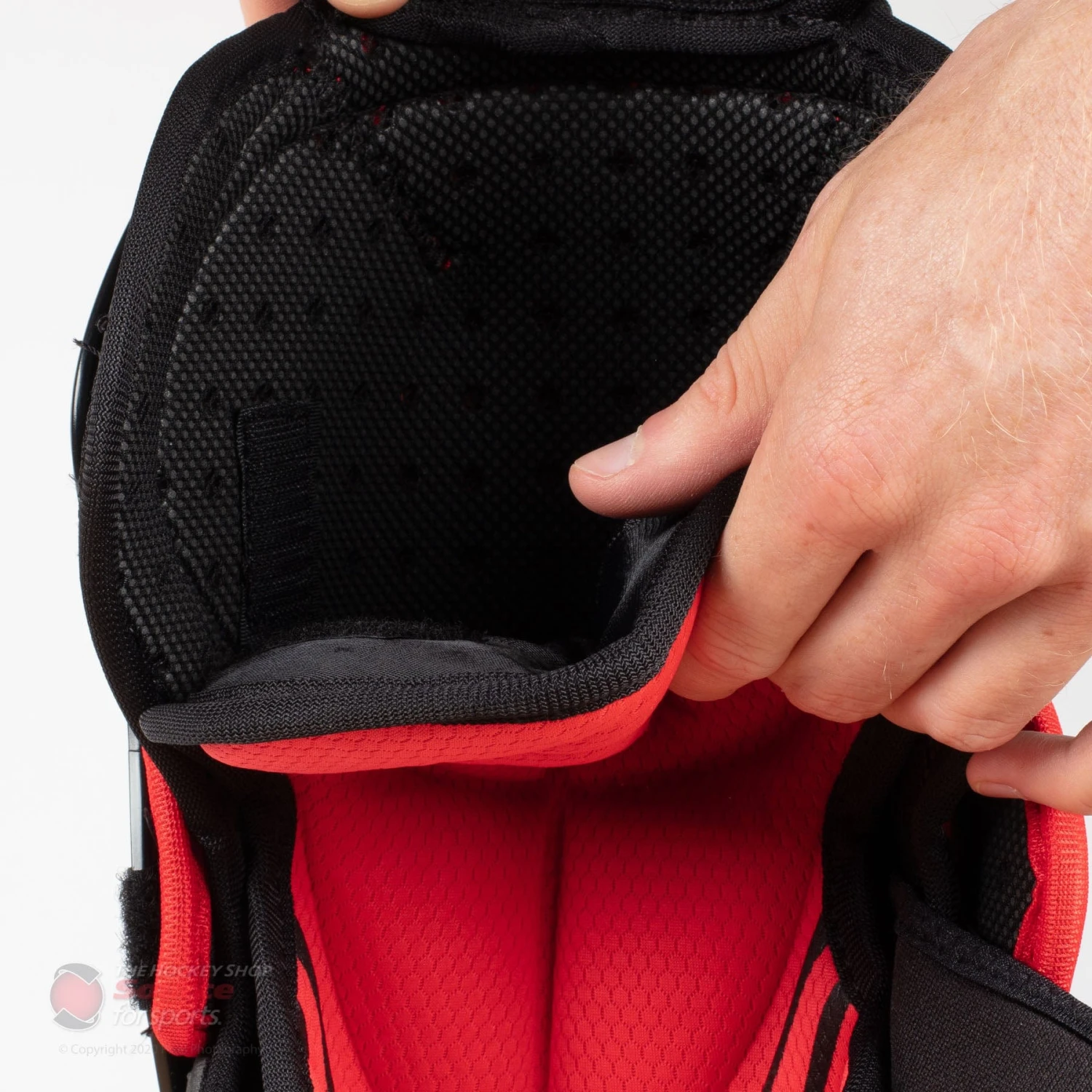 The Vapor 2X Pro shins have a DYNAFLEX lock strapping system with a TUNE FIT calf strap to ensure you stay comfortably locked in during your ice session.