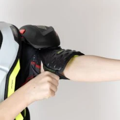 The spine continues to use Hyperlite HD foam, same as previous generations. Hyperlite HD foam is comfortable and lightweight, keeping up with the aerodynamic Vapor line. Like with the sternum, another feature of the pads’ spine area is the Shocklite foam insert. This is a material known across Bauer’s products for having pro-level absorption qualities. The spine area is also equipped with an EXOLite skin for additional shock absorption.