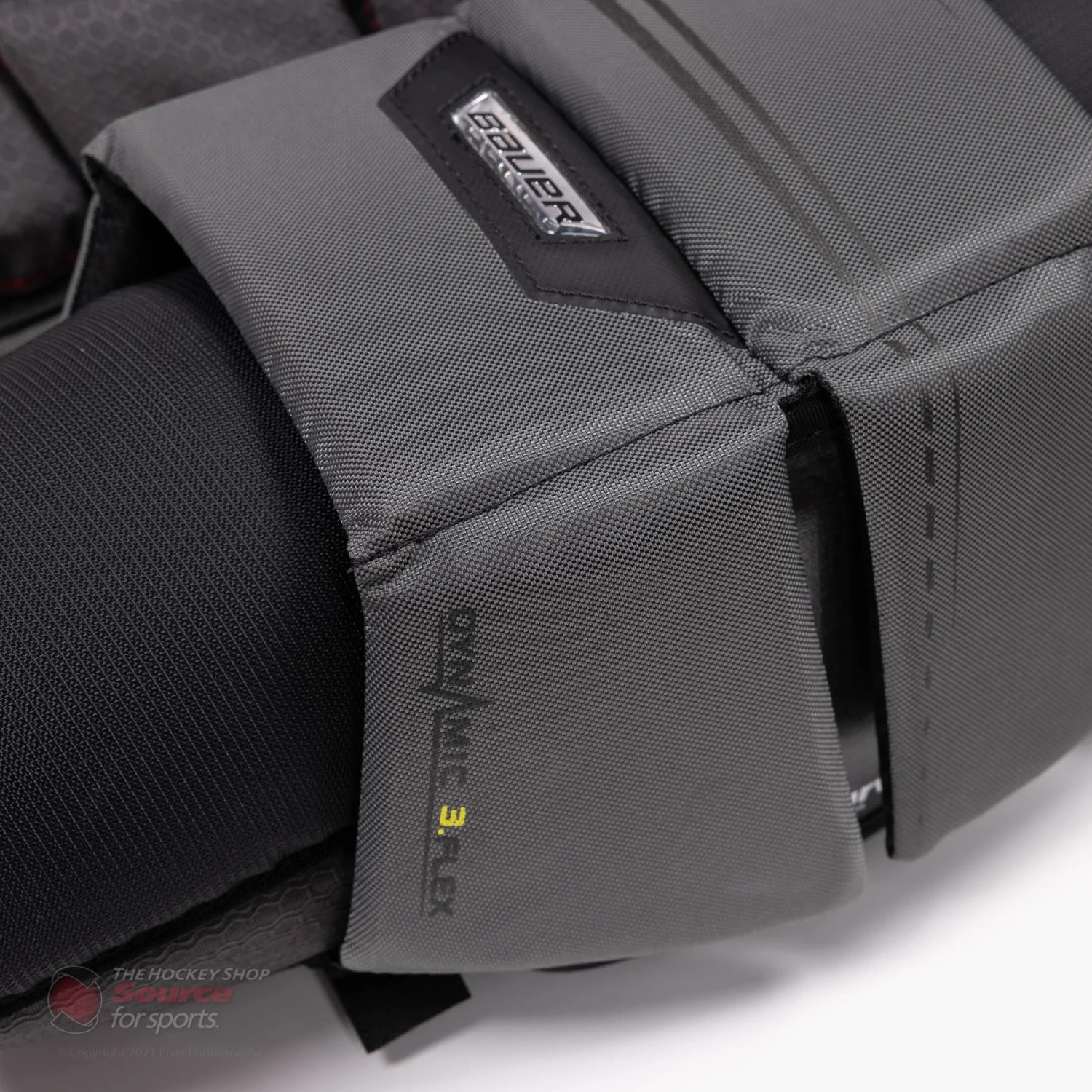 Bauer uses a molded Fused Composite with CURV reinforcement that wraps around the arm, the elbow floaters use the same Dynamic 3 Flex system that was seen on the 2X Pro with added Curv for increased protection. The molded arms now wrap further around offering better protection for those areas that were previously left exposed.
