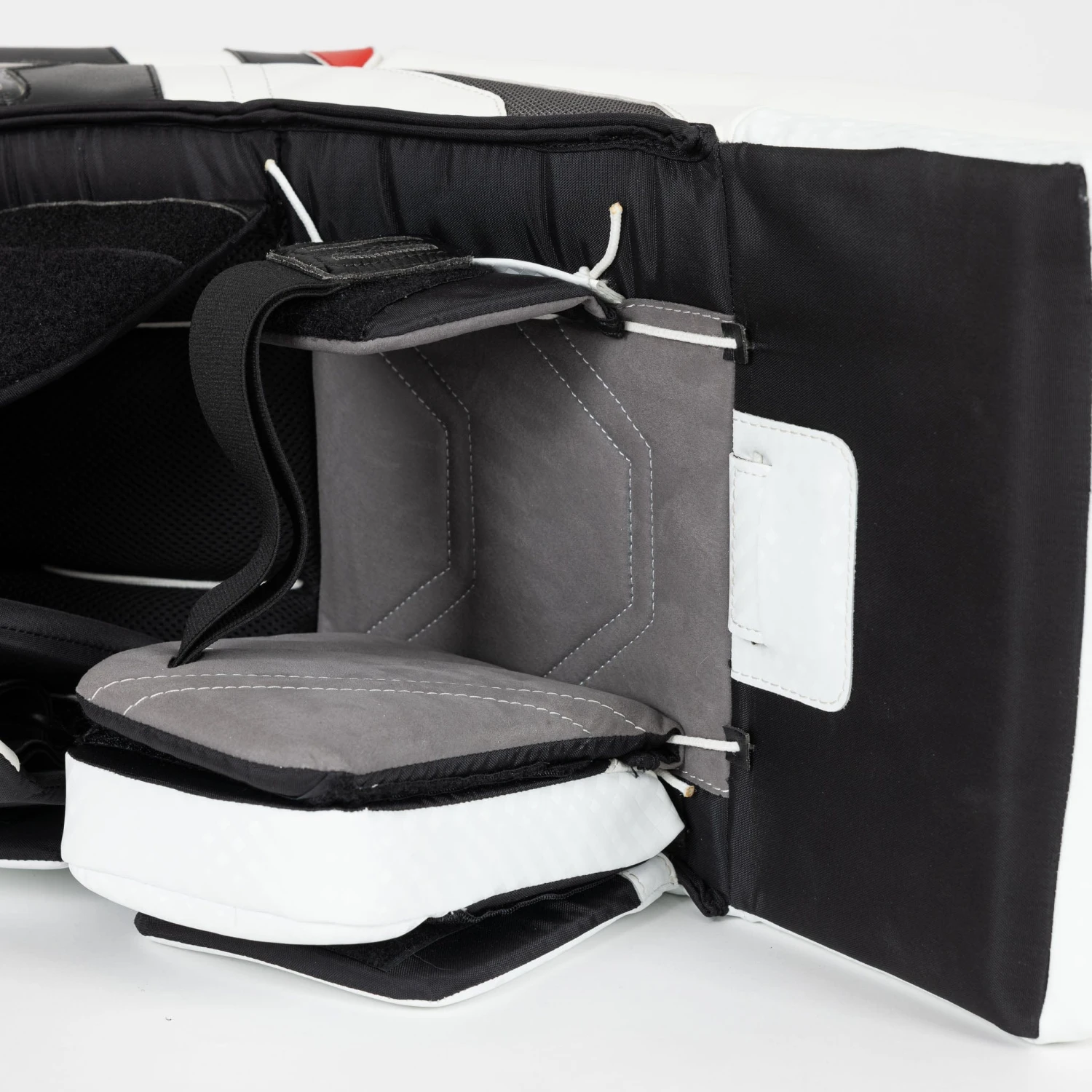 The X5 uses Jenpro synthetic leather on the exterior, a classic choice for goalie gear due to its water resistance and overall durability. The inside sidewall uses a Primo Slide surface, reminiscent of Brian’s older pro pad lines. Primo at this level offers a huge advantage to goalies, particularly younger ones, due to its highly competitive sliding capabilities.