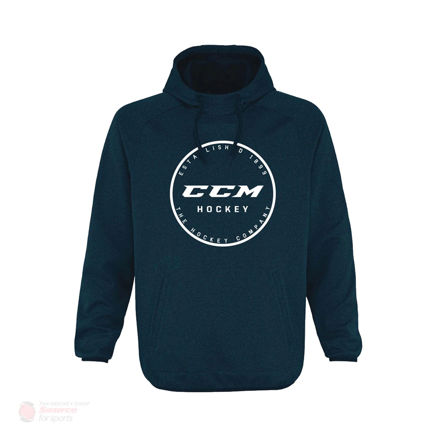 Kangaroo style pocket, drawcord adjustment elastic binding at body and sleeve opening.
