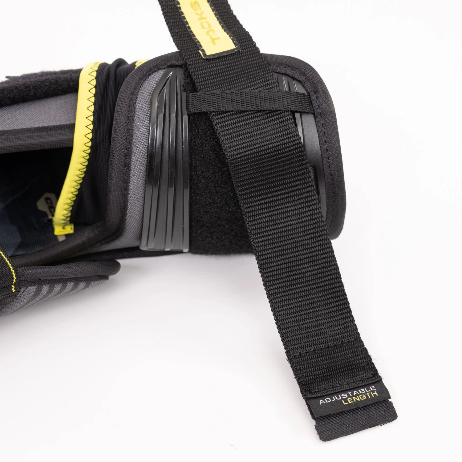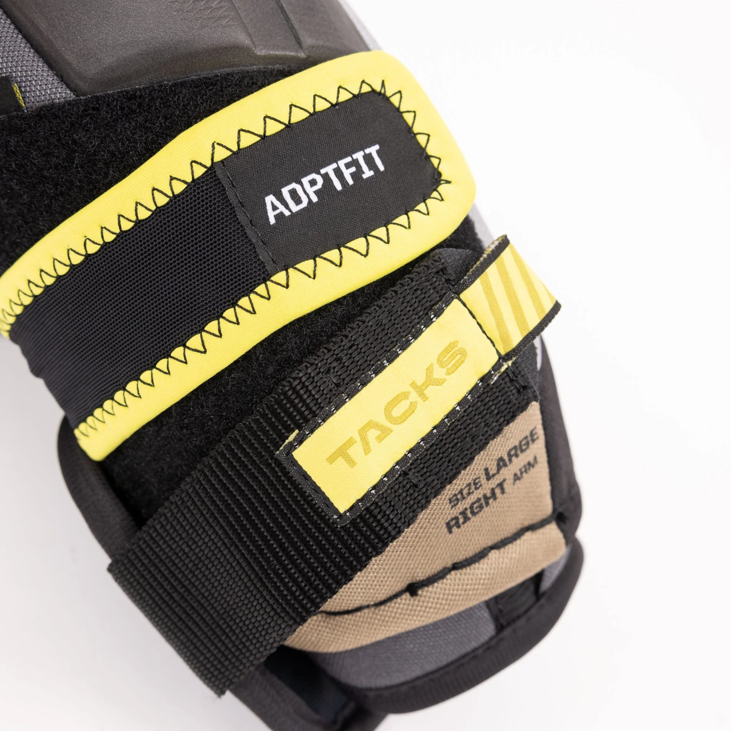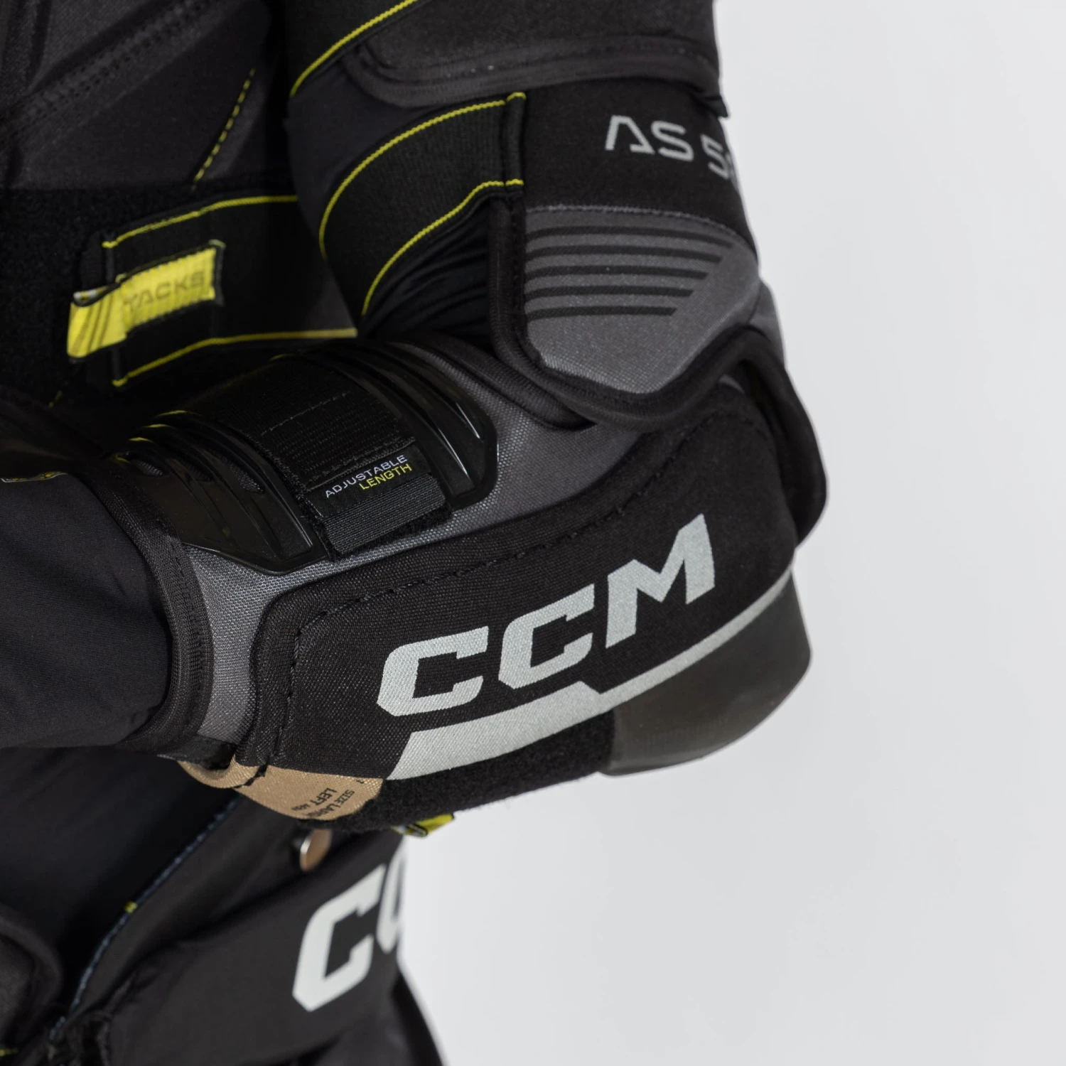 The bicep is guarded by an articulated, reinforced, two-piece floating guard. The two-piece construction is built to give you pro-level protection, no matter how you move on the ice.