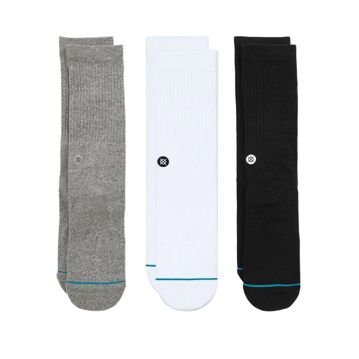Don’t go solo, life’s better in threes with Stance’s Icon 3 Pack. Three pairs of uncommon solid, everyday socks for any occasion. Whether you prefer all three to be black or like a mixture of black, grey and white, these Stance crew socks are sure to keep you comfy. The lifestyle socks maximize comfort using a much softer, stronger and smoother type of cotton than any other socks. Constructed with the concept of additional comfort for your feet, the socks feature extra cushioning and provide a some-what thick pair of socks while still offering maximum breathability.