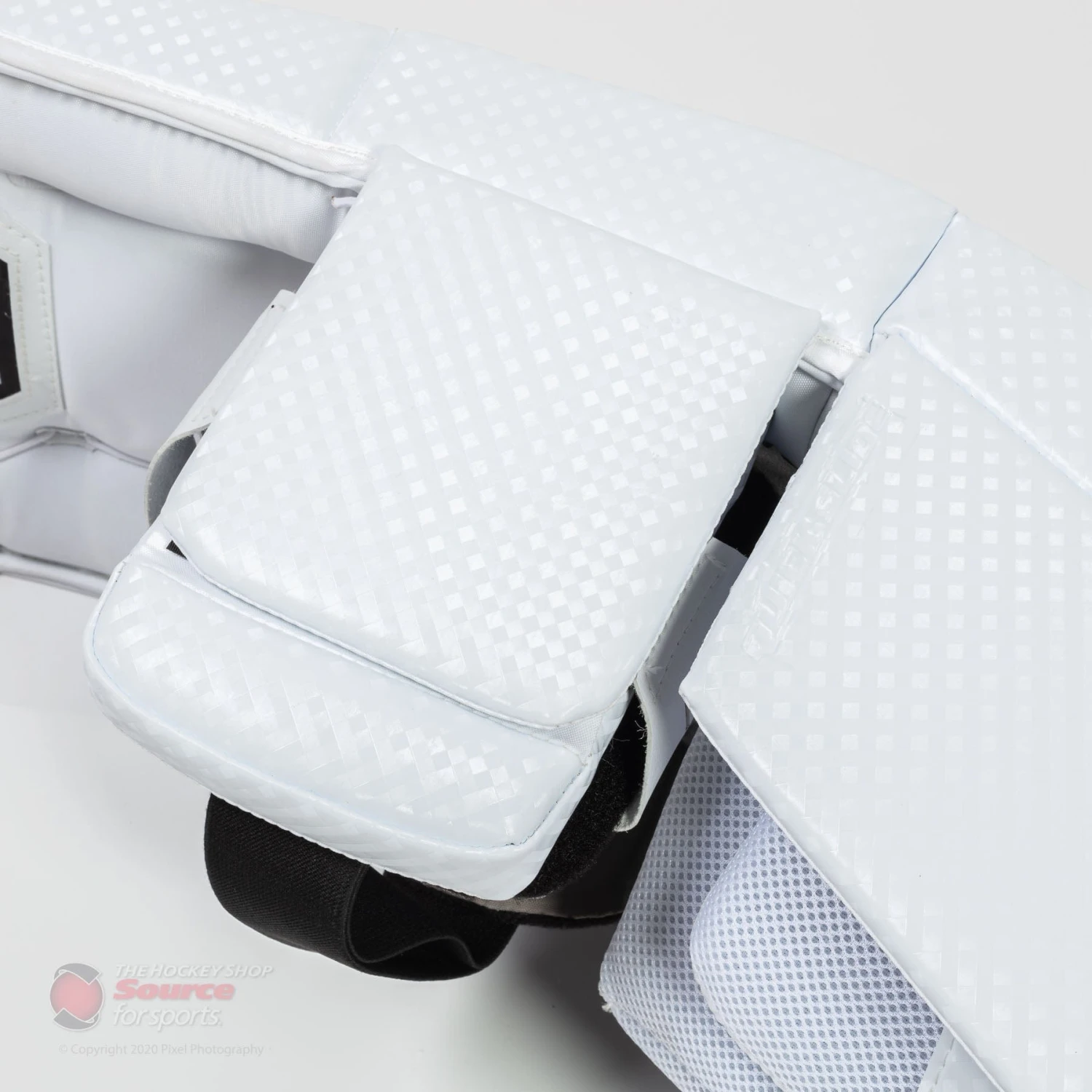 The knee cradle of the V9 Pro features a widened knee landing area for improved integration with knee pads of all sizes. The knee cradle is made of a removable, replaceable landing block covered with a soft Nash-like material. Different knee blocks varying in thickness and density will be available in order to provide a truly customized fit. The outer knee wing is made of nylon and is laced in allowing it to be adjusted or removed entirely. The centre of the knee cradle features Vaughn’s MSH which speeds up pad and leg rotation when dropping into and recovering from the butterfly.