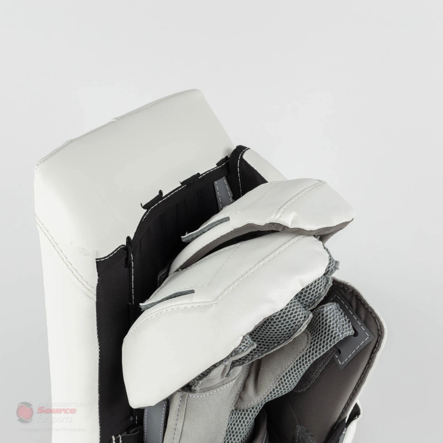 One of the lightest blockers on the market, the Warrior Ritual G5 SR+ looks to improve on performance while keeping the blocker as light as possible. New this year is Warrior’s innovative CoverEDGE+ technology that maximizes coverage with their new face forward design, taking away more of the shooter’s angle while the goalie maintains the same positioning.