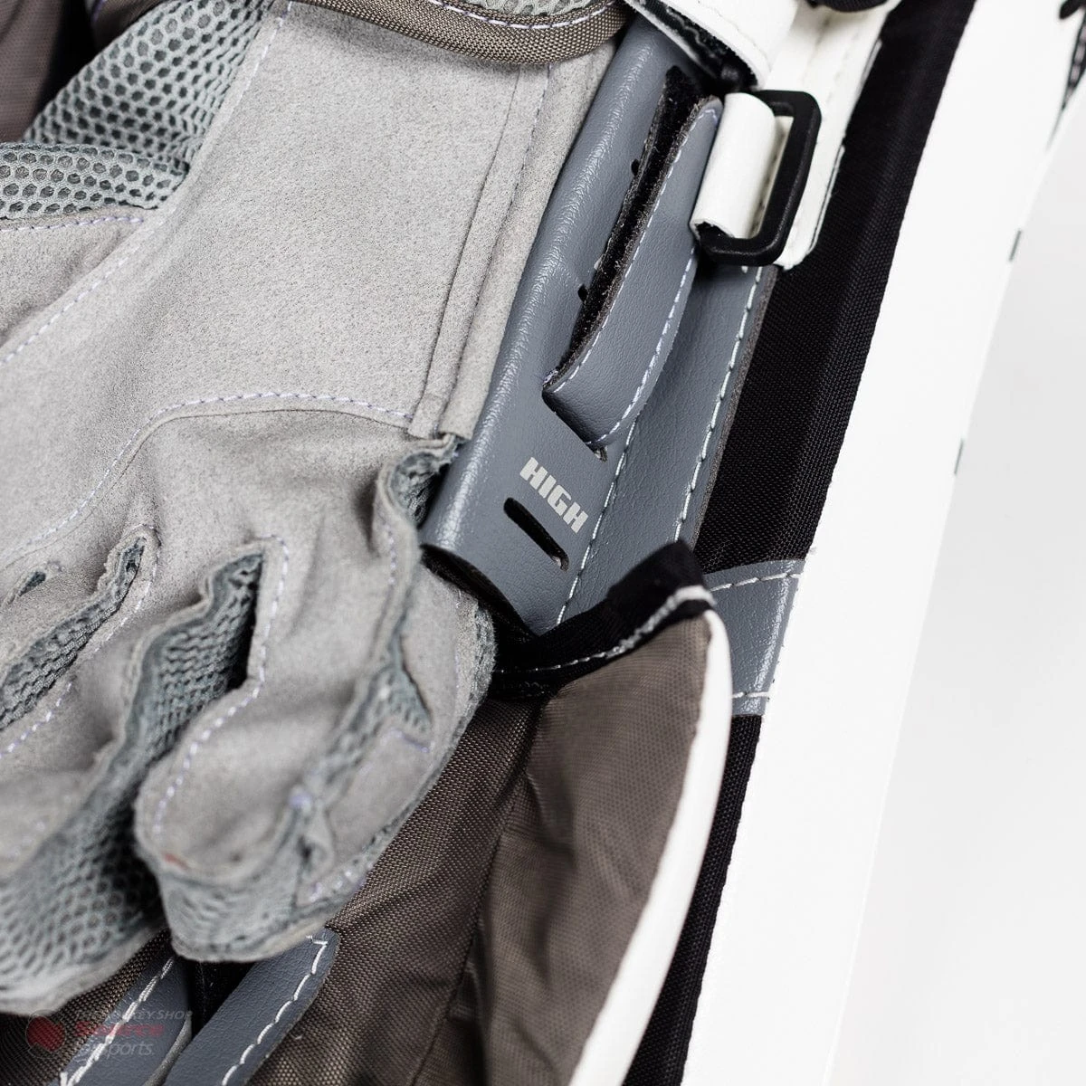 The side board of the blocker also features ample finger protection, designed to fit the goal stick without any weak spots but also no interference. The GT2 blocker has contoured finger protection to make sure your fingers are protected, no matter the shot. Using plastic molds and HD foam, you can be confident on any shot knowing you’re protected. The finger protection also has velcro adjustments to add customizability to how tightly your fingers are connect to the finger protection, giving the choice of mobility.