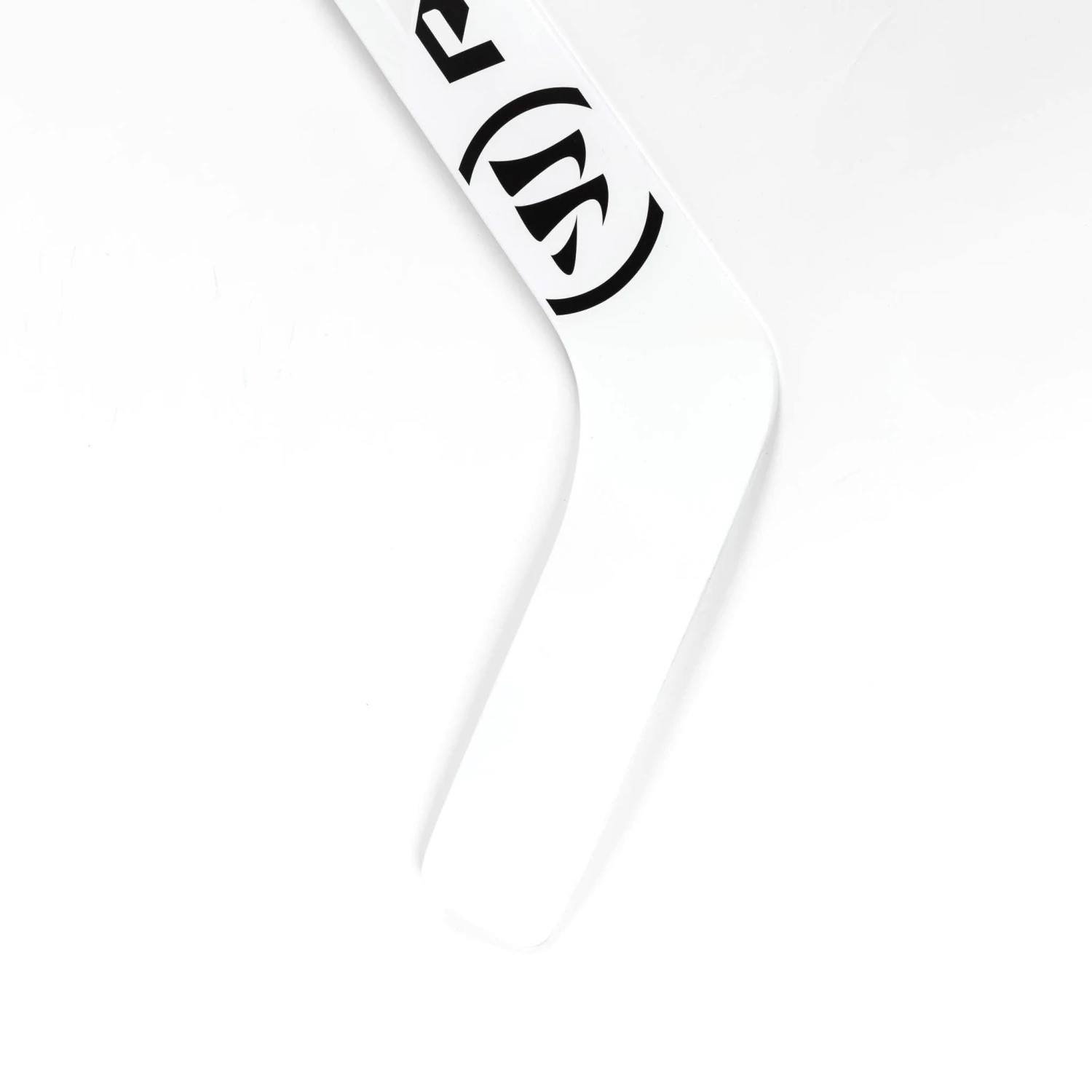 The Warrior M1 SR+ goalie stick comes in one colourway of white and black while also featuring a pop of colour with a blue, green, and yellow graphic on the upper paddle. The whole stick is polished off with a matte finish.
